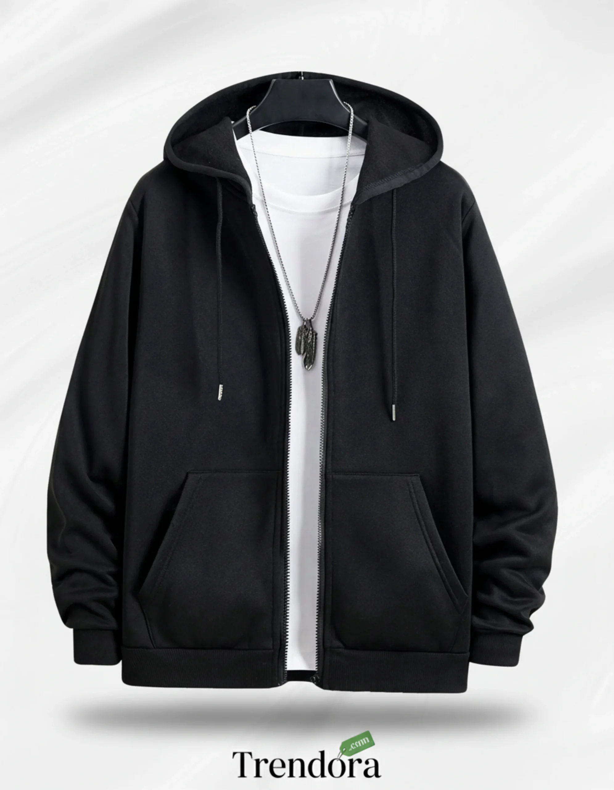 Made from soft and comfortable fabric, it features a front zipper, adjustable hood, and front pockets, making it suitable for everyday wear and streetwear collections.