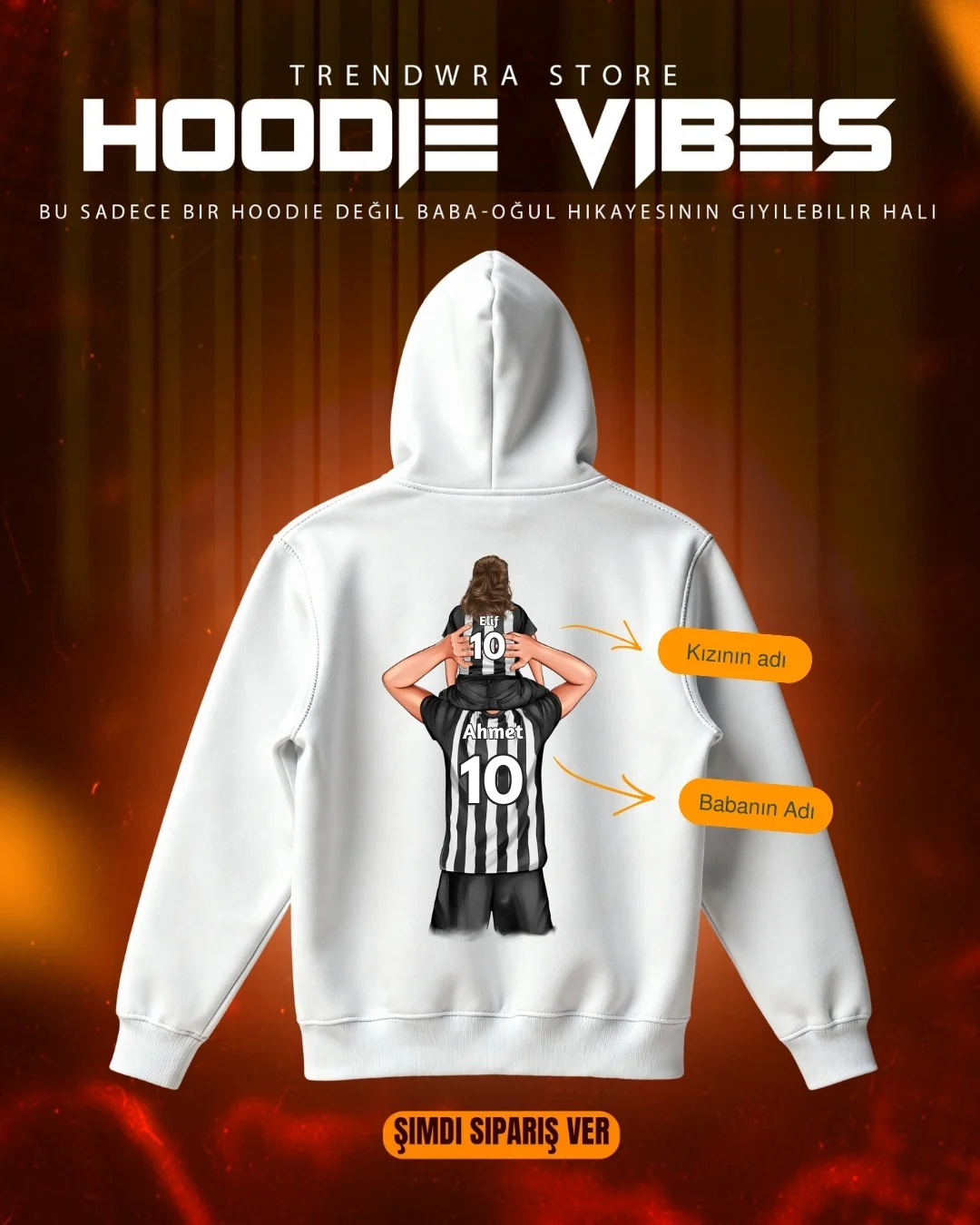 Bu özel hoodie, baba ile kızı arasındaki sevgiyi ve bağı futbol temasıyla buluşturan anlamlı bir tasarımdır.